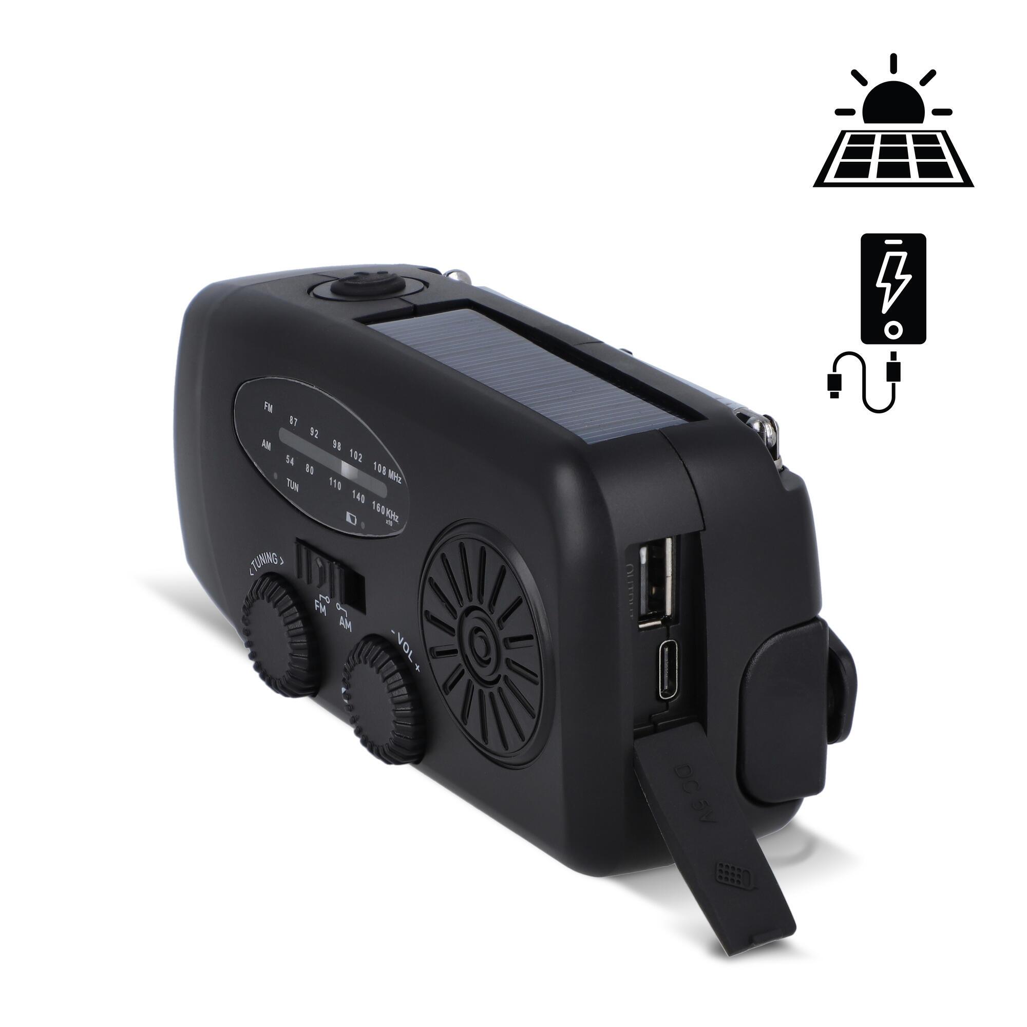 Safesound Nødradio med Radio, Lommelygte, Powerbank - Opladning: håndsving/USB/Solcelle