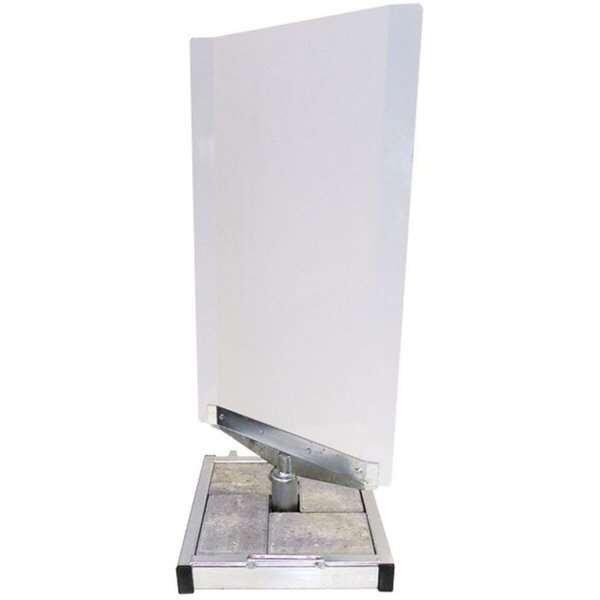 Hvid topplade i polyesterlakeret aluminium monteret på galvaniseret holder med dobbelte kuglelejer. Kraftig og stormsikker fod med 4 fliser indlagt.