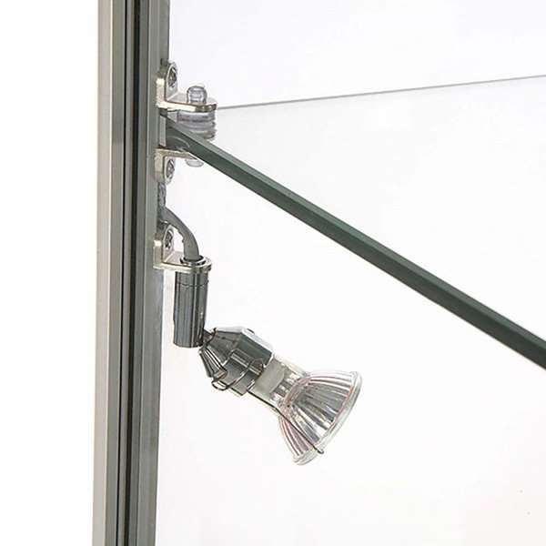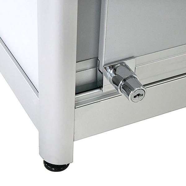 Alu-sølv anodiseret glasmontre med låsbart underskab og 3 stk. 7 mm glashylder.