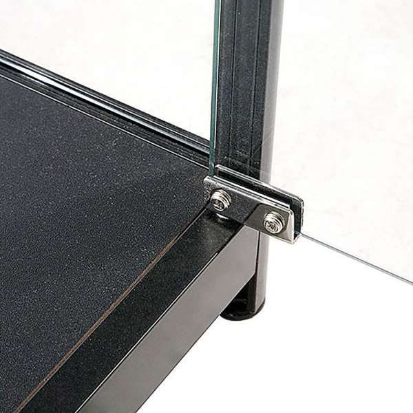 Sort anodiseret glasmontre med 4 stk. 7 mm glashylder.