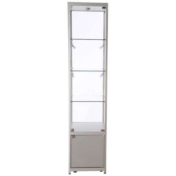 Vitrine glasskab - Showcase Tower Solo glasmontre med underskab - sølv