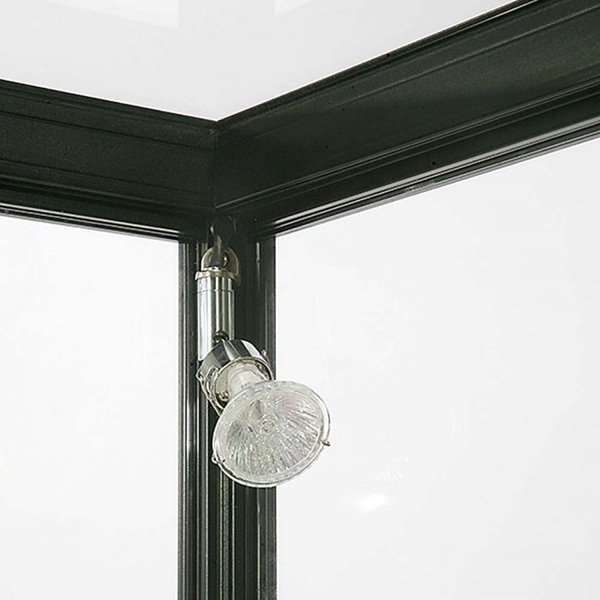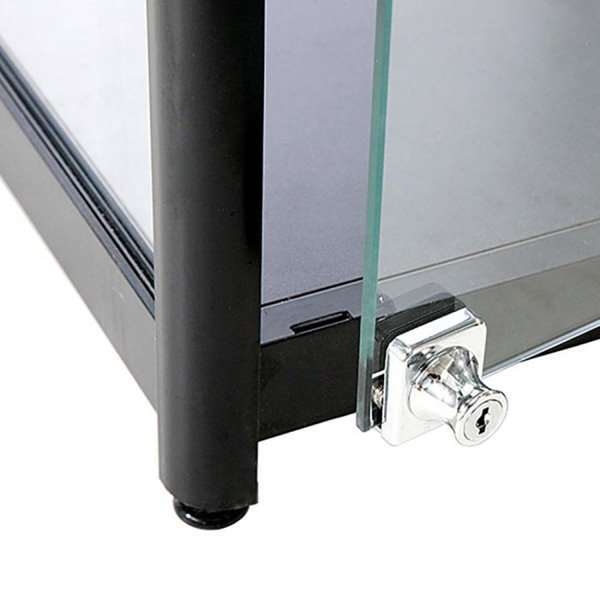 Glasmontre, udstillingsskab, sort, med LED-lys og lås, alu