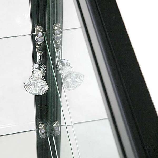 Vitrine glasskab, sort, med LED-lys og lås, alu