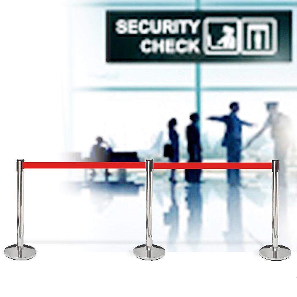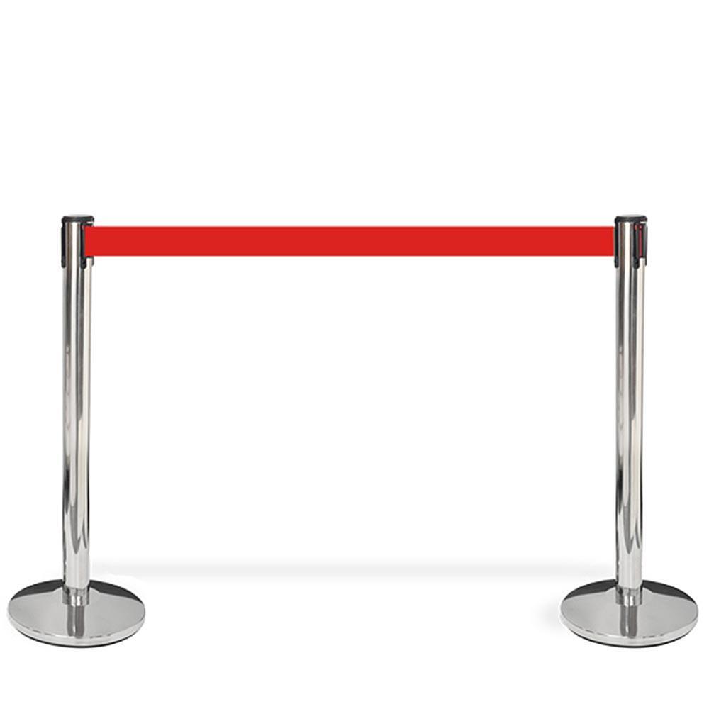Afspærringsstander, 1 stk, metal, 3 m bånd, Sølv stolpe, rødt eller sort bånd