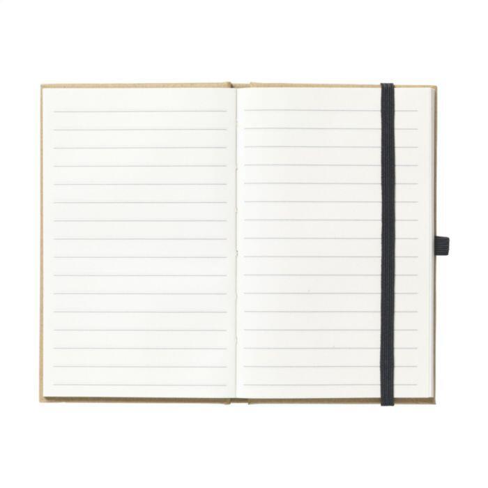 Notesbog i A6-format fremstillet af genbrugsmaterialer.
