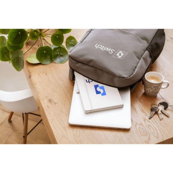 Rygsæk fremstillet af robust 600D RPET polyester. Udstyret med et rummeligt rum med robust lynlås og et beskyttende skumrum til sikker transport af en bærbar computer med en skærmstørrelse på op til 15,6 tommer.