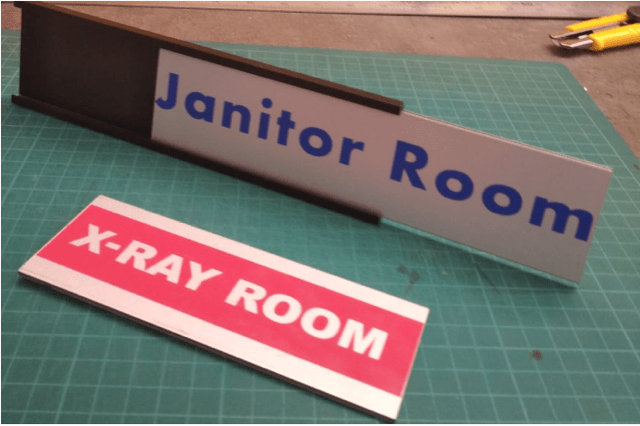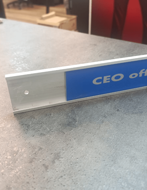 Gennemsigtig plexiglas er monteret foran - du isætter dine egne printede indlæg under plexiglasset.